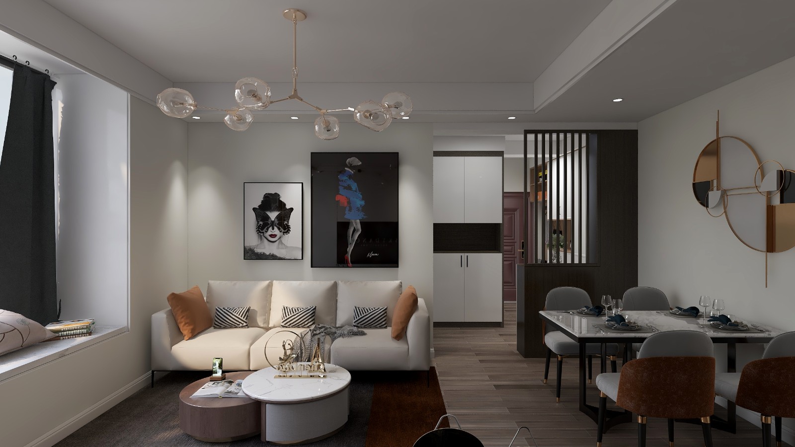 进门可以看见卧室房间门,所以在玄关和客餐厅之间做了一个柜子,做为隔断,增加客餐厅的隐私性。