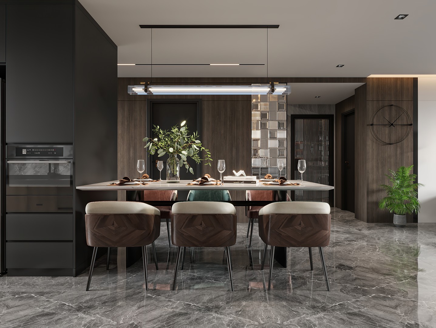 开放式厨房,酒柜与电器柜合二为一。
