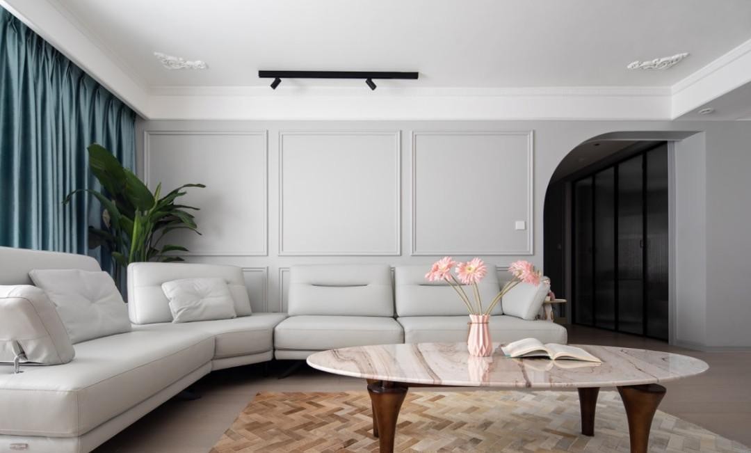 本案例是一个109平家装,常住人口夫妻两人,在设计风格上,业主对审美有要求,设计师决定房间的风格为近几年较为流行的现代轻奢风来满足业主的诉求。在色彩搭配上主要采用灰色为主色调,搭配墨绿色体现时尚感