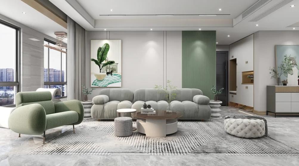以淡雅色系为主线,温柔实木色、清新自然绿再搭配雅致白饰面背景,为室内营造出舒适宜居的生活氛围,可以是窝在客厅的方块组合沙发里享受悠闲的午后,也可以是夜晚时分躺在柔软的床上安然入睡,在清新的家居环境里,不错过生活里的每一瞬幸福。