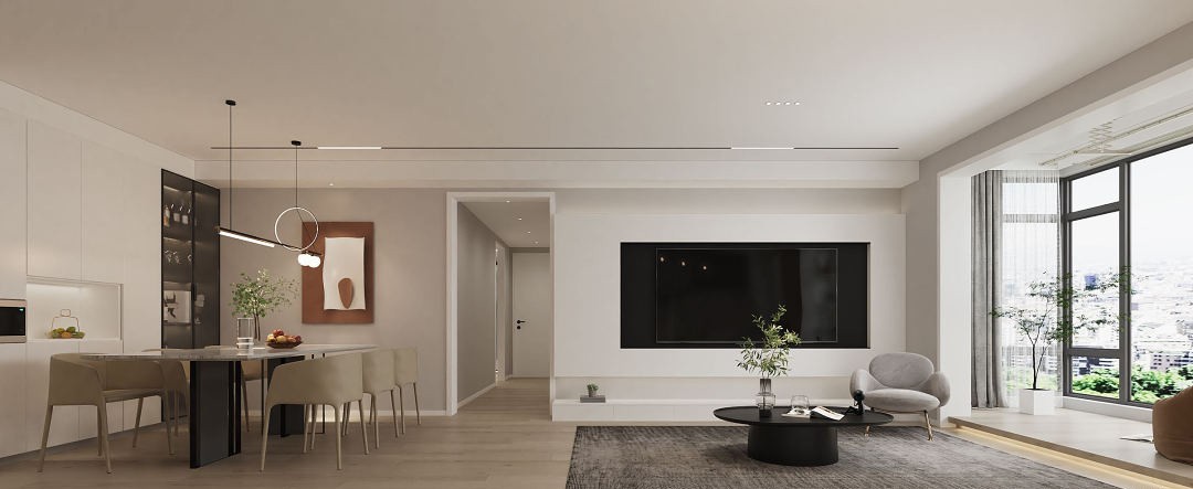 客厅以米色调为主,整个空间简约而明亮。