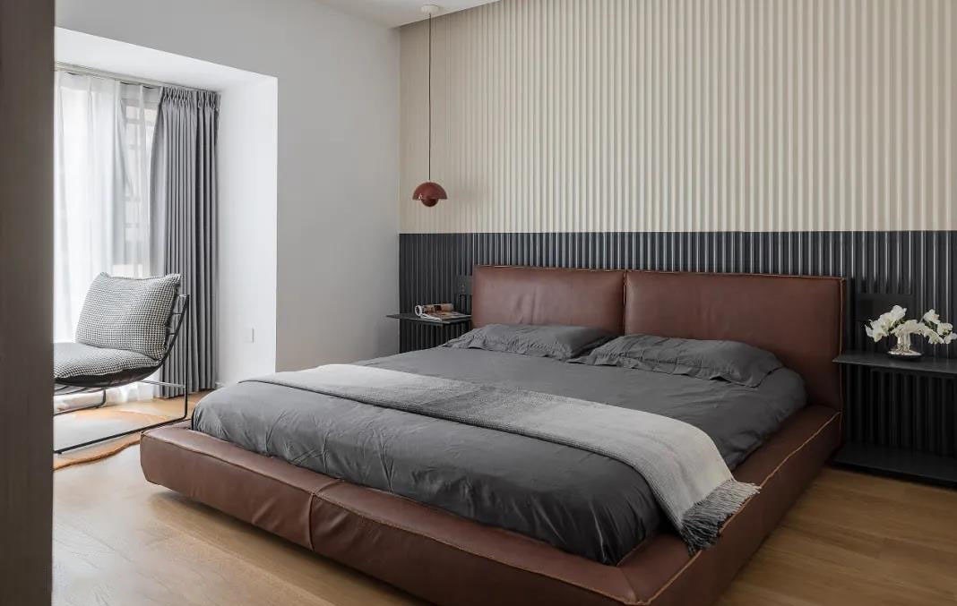 主卧是家中***仪式感的空间,双开门背后,先经过衣帽间再到达睡眠空间,在走动中情绪随之层层递进。 这一点精心维持的仪式感,也是夫妻二人挖掘生活新鲜感的方式。