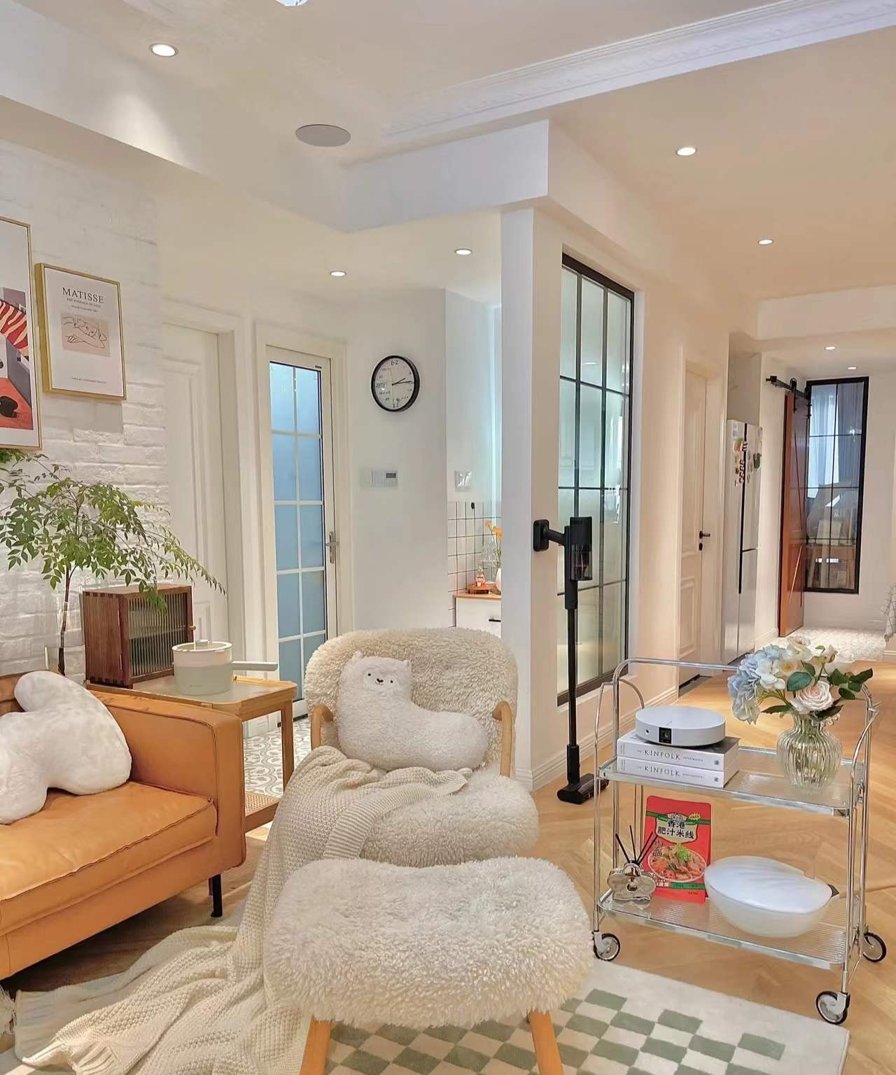 白色+原木色和布艺,没有复杂造型