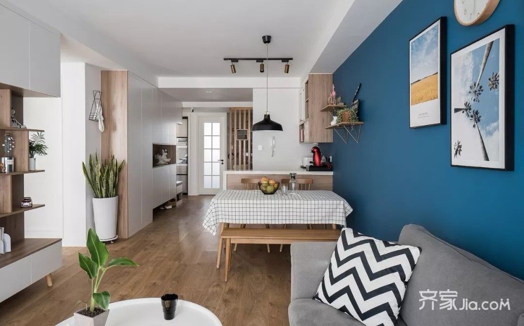 90㎡雾霾蓝配原木色新居