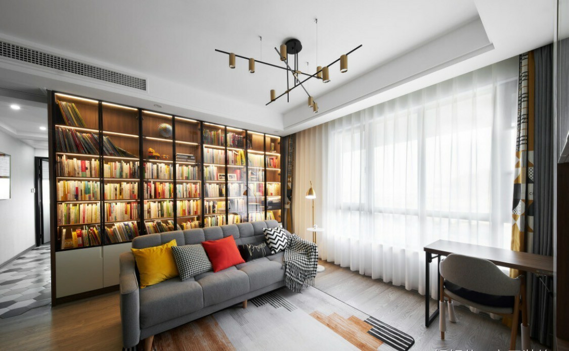 开启灯带,柔和静谧的灯光下,漂亮的书籍优雅亮相,营造出全家人一同“充电”的温馨氛围。