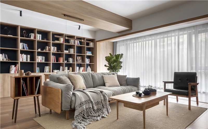 书桌后面为业主预留了近4.5米的大书柜,半开放式的柜子里安放着那些缓缓流逝的岁月时光,世界再大,读过的书会慢慢地变成你的一部分,变成平淡日子里的星星。