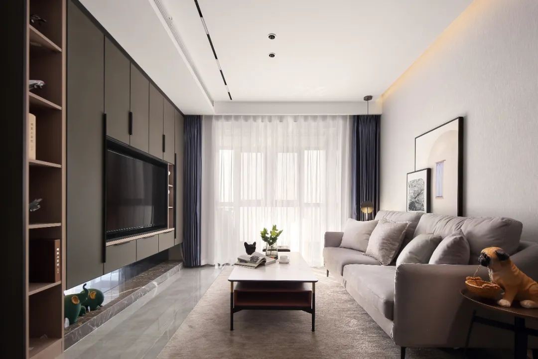 客厅空间摈弃了繁复的装饰,低调沉稳,简约不失时尚感。