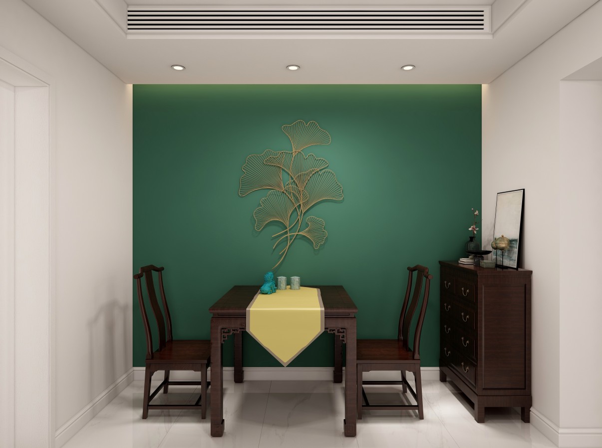八仙桌为原有家具,餐区墙面使用了墨绿色,顶部设计了洗墙灯,增加墙面亮度。