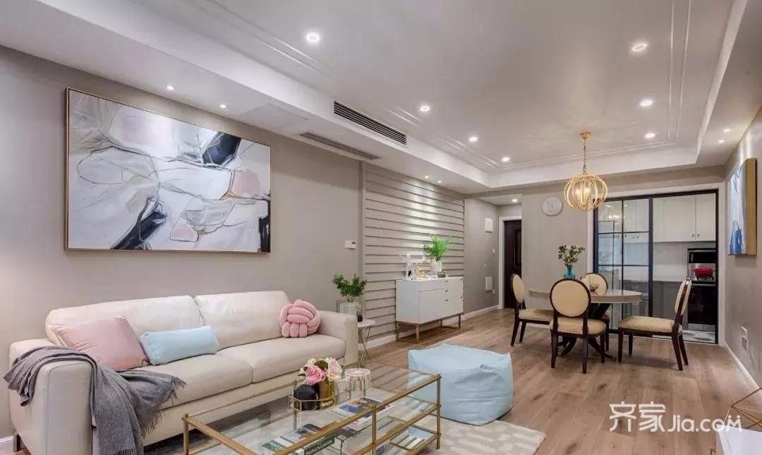 这是一套建筑面积为105平米简约风家装案例,因为空间中加入的一抹粉色装饰,整个空间都变得充满少女感。 平面布置图 面积:105㎡ 户型:三居室 风格:简约