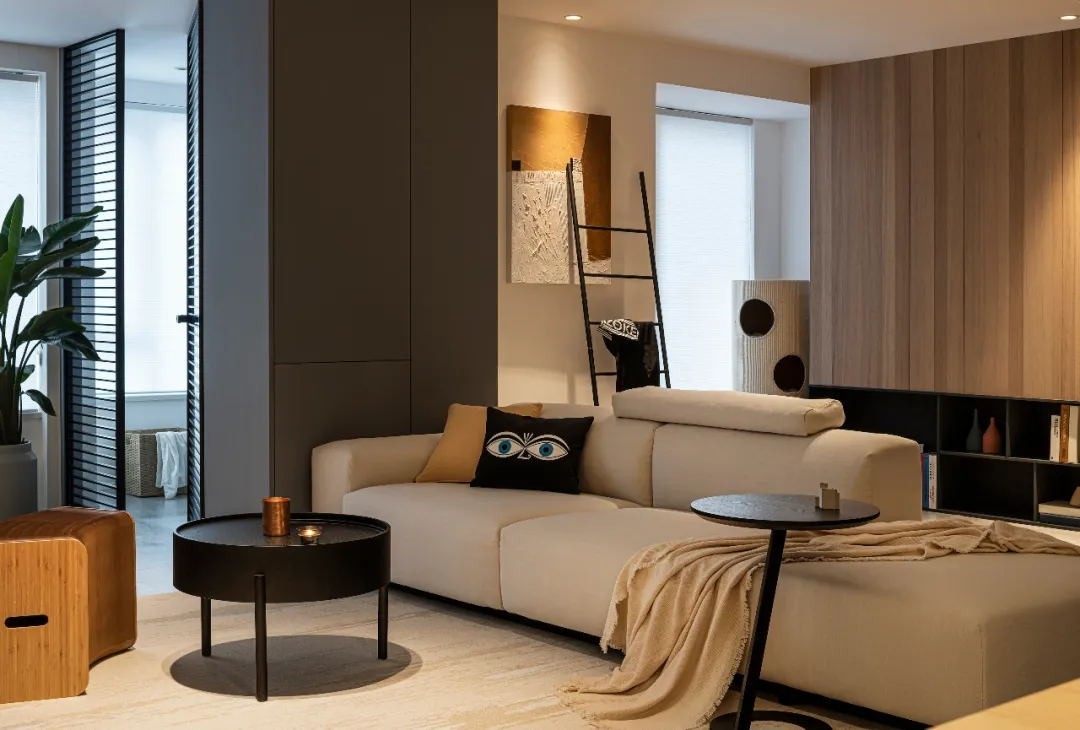 本案屋主是两人一猫:作为商务精英的他有着缜密的逻辑思维,对一切加以审视消化,希望家里整体风格硬朗冷峻;而作为老师的TA随遇而安,希望家的氛围更为舒适温暖