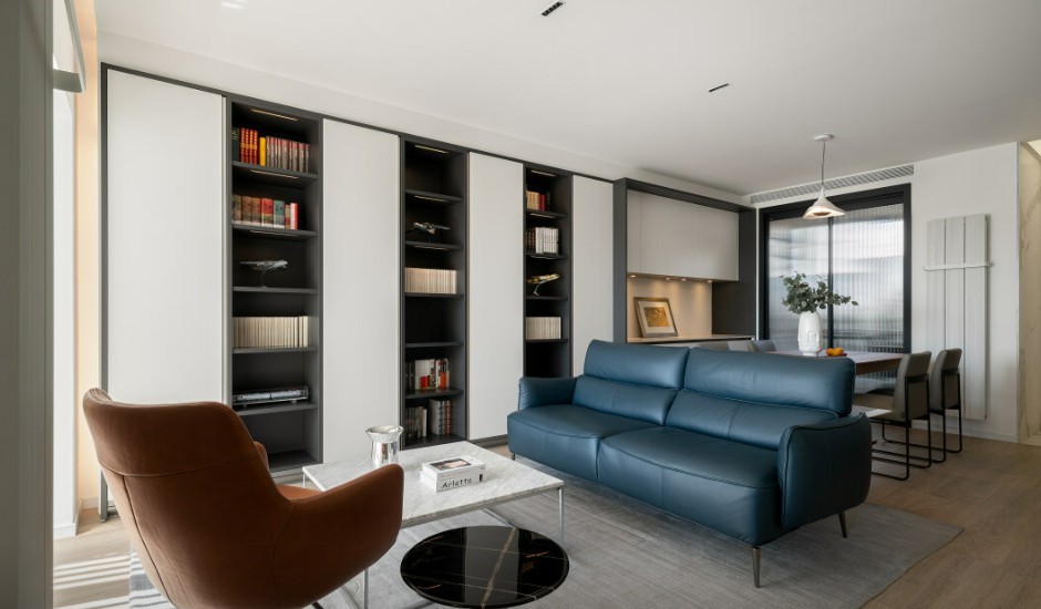 厨房、客餐厅、阳台,一体相连。整体动线设计十分流畅,保证了一个通透的视野和居家环境。