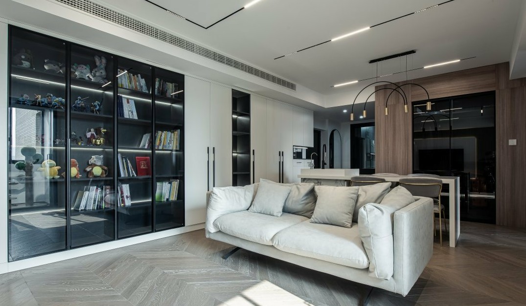 公共区无主灯设计、通铺的鱼骨拼木地板让整个空间显得更加简约大方。