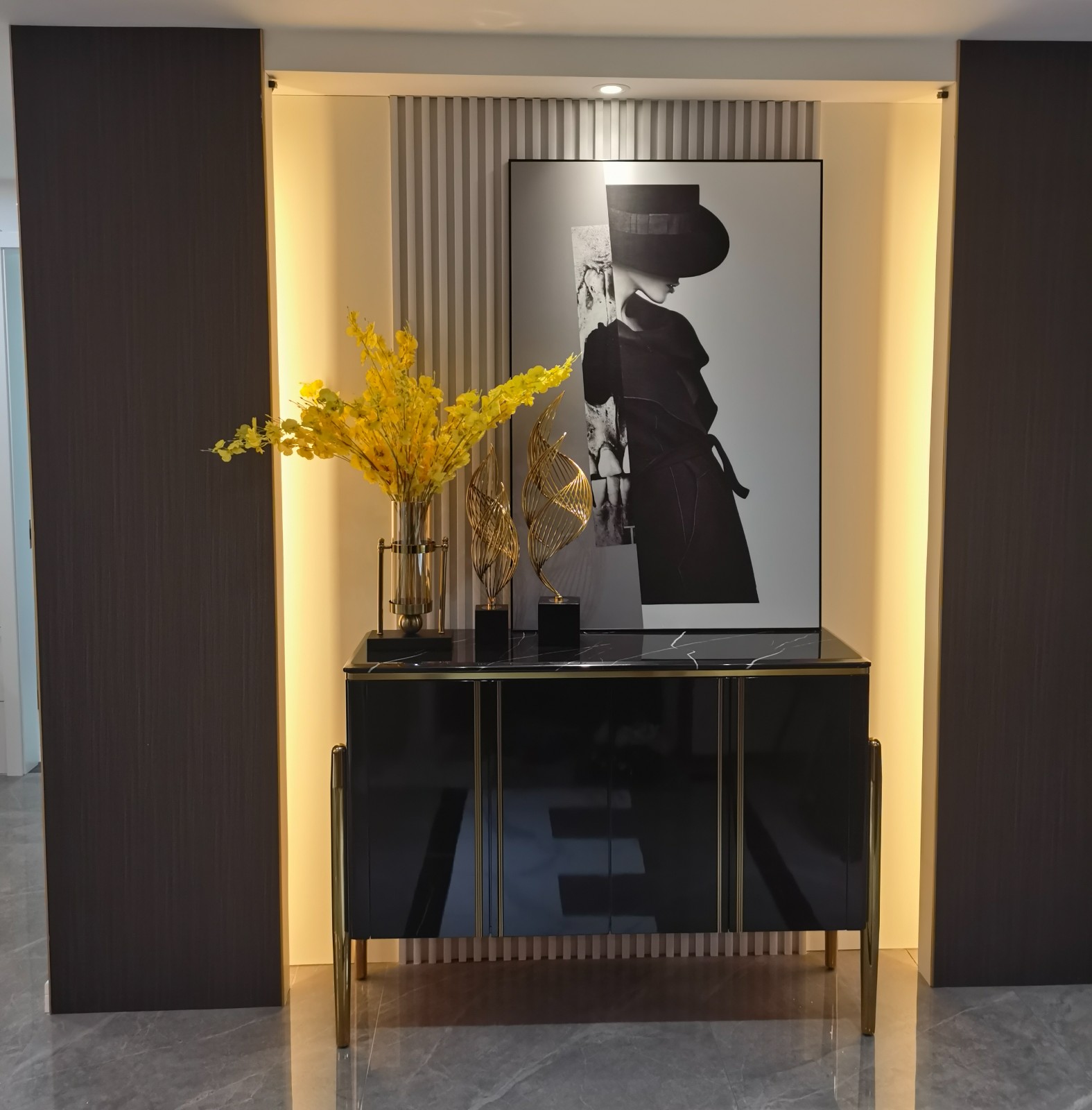 餐厅距离厨房很近,餐桌嵌入餐边柜,美观又实用。