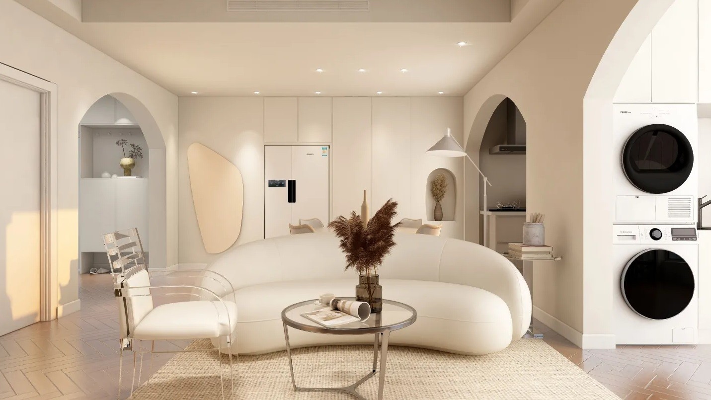 奶白色的风格,配备原木色的风格