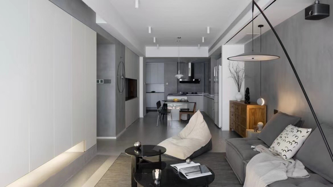 房屋的风格上以水泥漆、铁艺、木纹、水泥色瓷砖为主体元素,打造黑白灰的粗犷空间氛围;搭配精致软装,冷静而柔和。多场景的灯光与灰度空间相配合,足以让人放下防备。