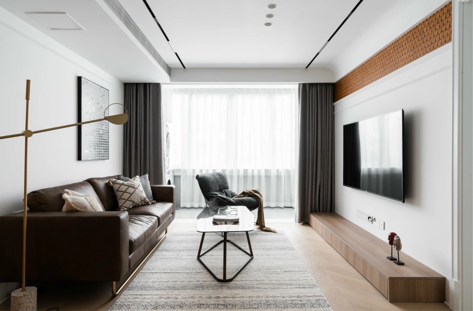 客厅由原来的一间带阳台卧室改造, 再拆掉进门处原有的到顶鞋柜, 使得采光优势发挥到了***。