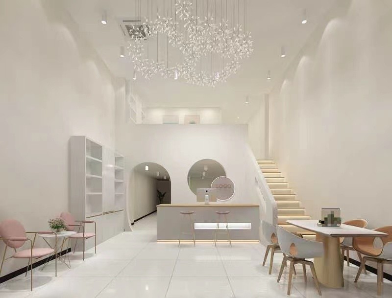 工作区采用弧形门洞,整体色调白色为主,具有唯美感。