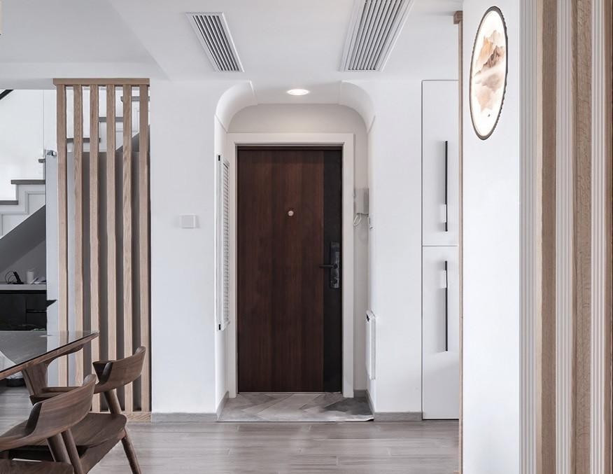 玄关,家的形象位置,兼具美观及收纳的重要空间。进出门的收纳全部做的隐藏式,暗藏式的抽拉鞋柜,暗藏式的穿衣镜,把玄关物品收纳的井井有条,不会显得凌乱。