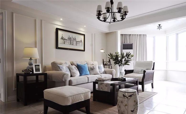 房子整体的配色以暖白色为主,搭配美式风的家具和在墙面做了石膏线装饰,把整个家给变得沉稳大气而又简洁大方~简简单单的设计当中,也展现出了独特的美感。