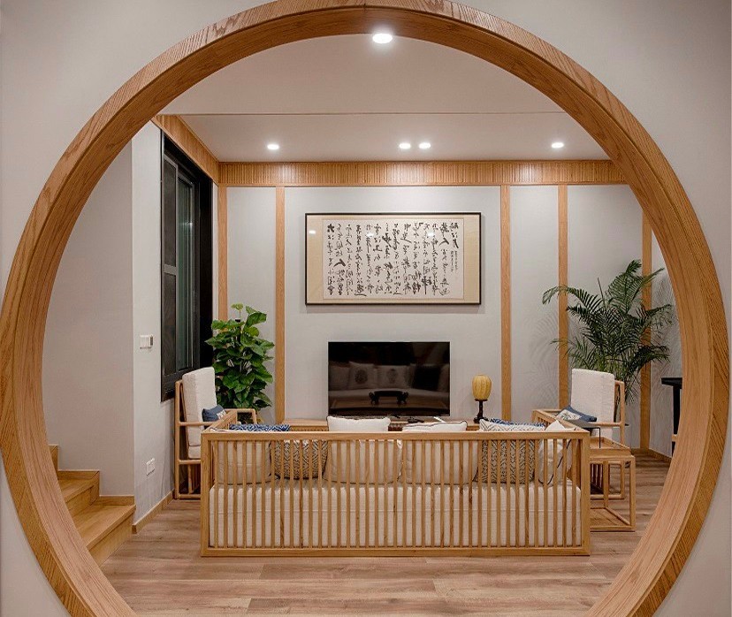 中式设计感的吊灯用平淡的色彩展示自己的底蕴,设计师使用建筑及室内的简洁风格,以此为基础环境,通过柔和的灯光和木色的背景来突出家居的重要性。