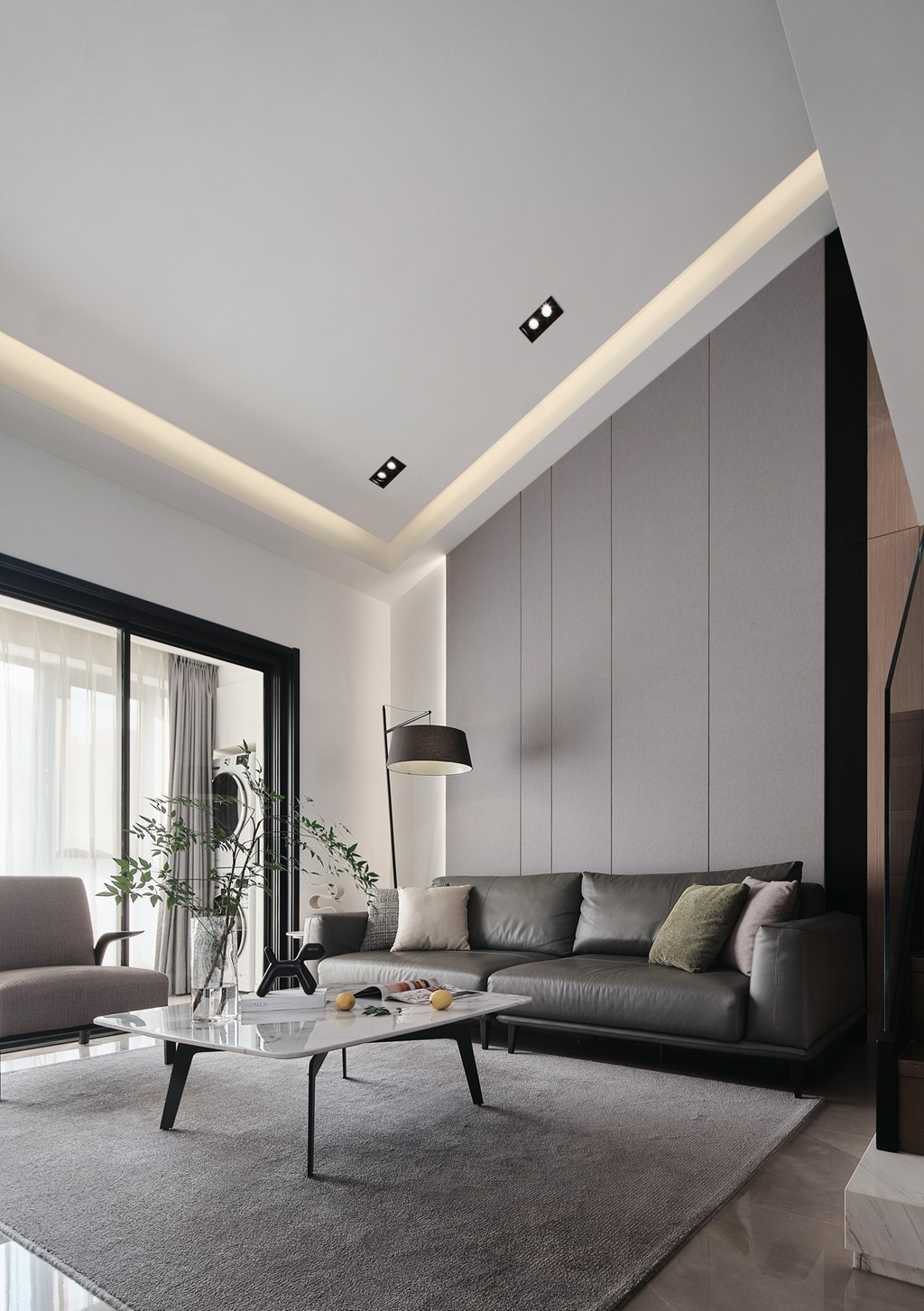 本案是一套顶复户型,格局方正且南北通透,考虑常住人口较少,最初的平面规划相对大胆,但是由于各种原因受限于结构改动,开工后再停工重启方案设计,继而恢复了原始的户型结构,中间又反复遭遇疫情的干扰,几经艰难终落地,甚是欢喜。虽然最终平面方案对原户型结构没有进行较大的调整,但也巧妙利用了内部既定的结构陈设,通过立面和材质链接形成了丰富的空间视角,使空间从色彩、尺度、形态、感知上都有别于常规的视觉体验。艾默