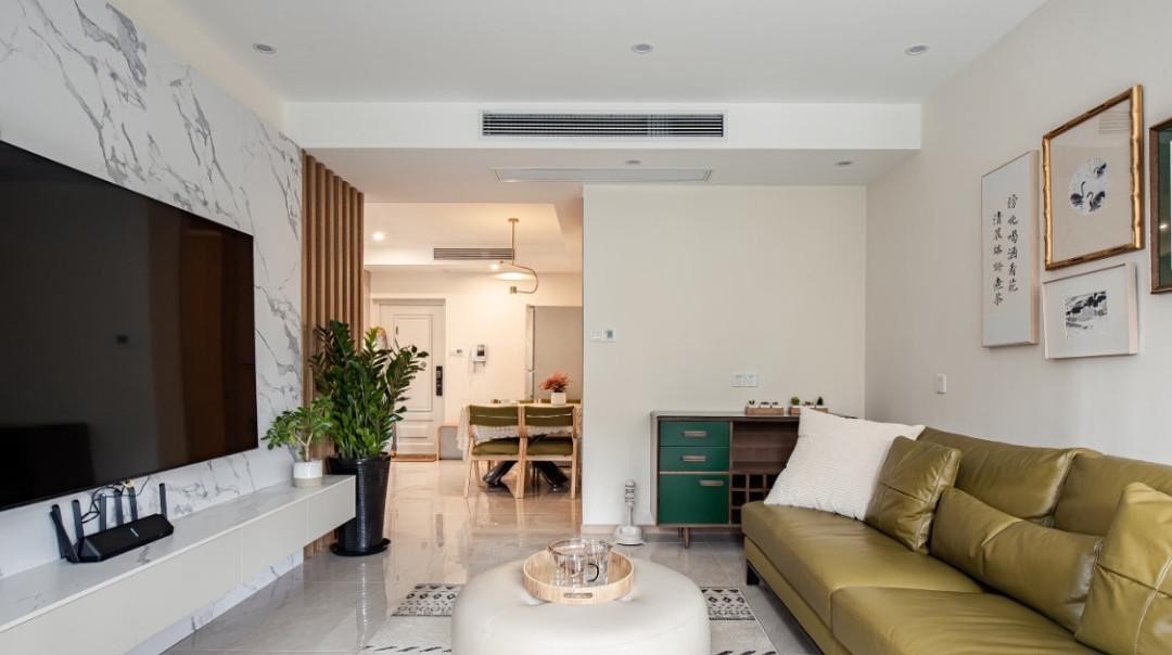 客厅以白色为基底,整体搭配上保持清新的家居感受。