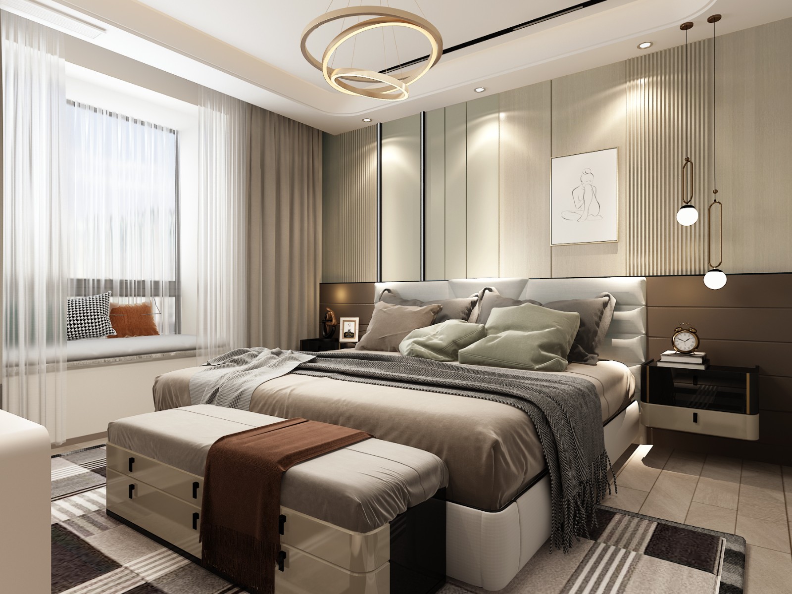 卧室豪华但不失实用性,高雅而又温馨