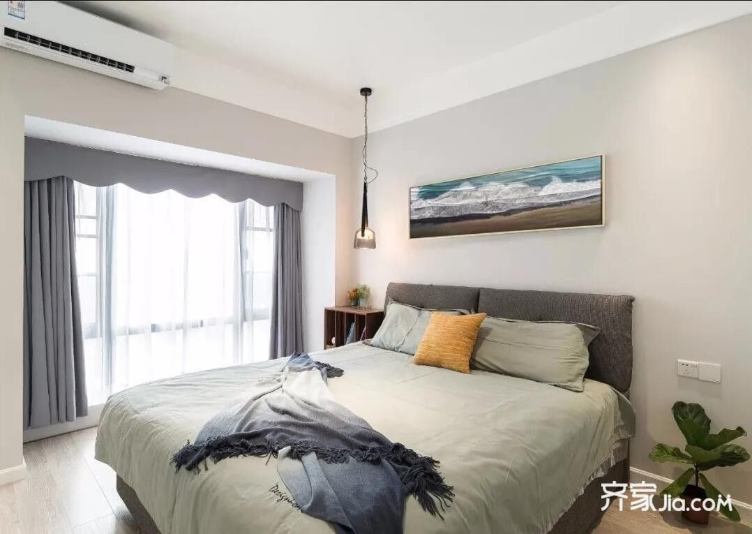 卧室在现代舒适的空间基础,还以素色的床单与窗帘,营造出一丝丝的成熟气质,单侧床头柜+吊灯,另一侧是衣柜+天花筒灯的布置,整体简洁的衣柜门,使空间充满了时尚优雅的气质