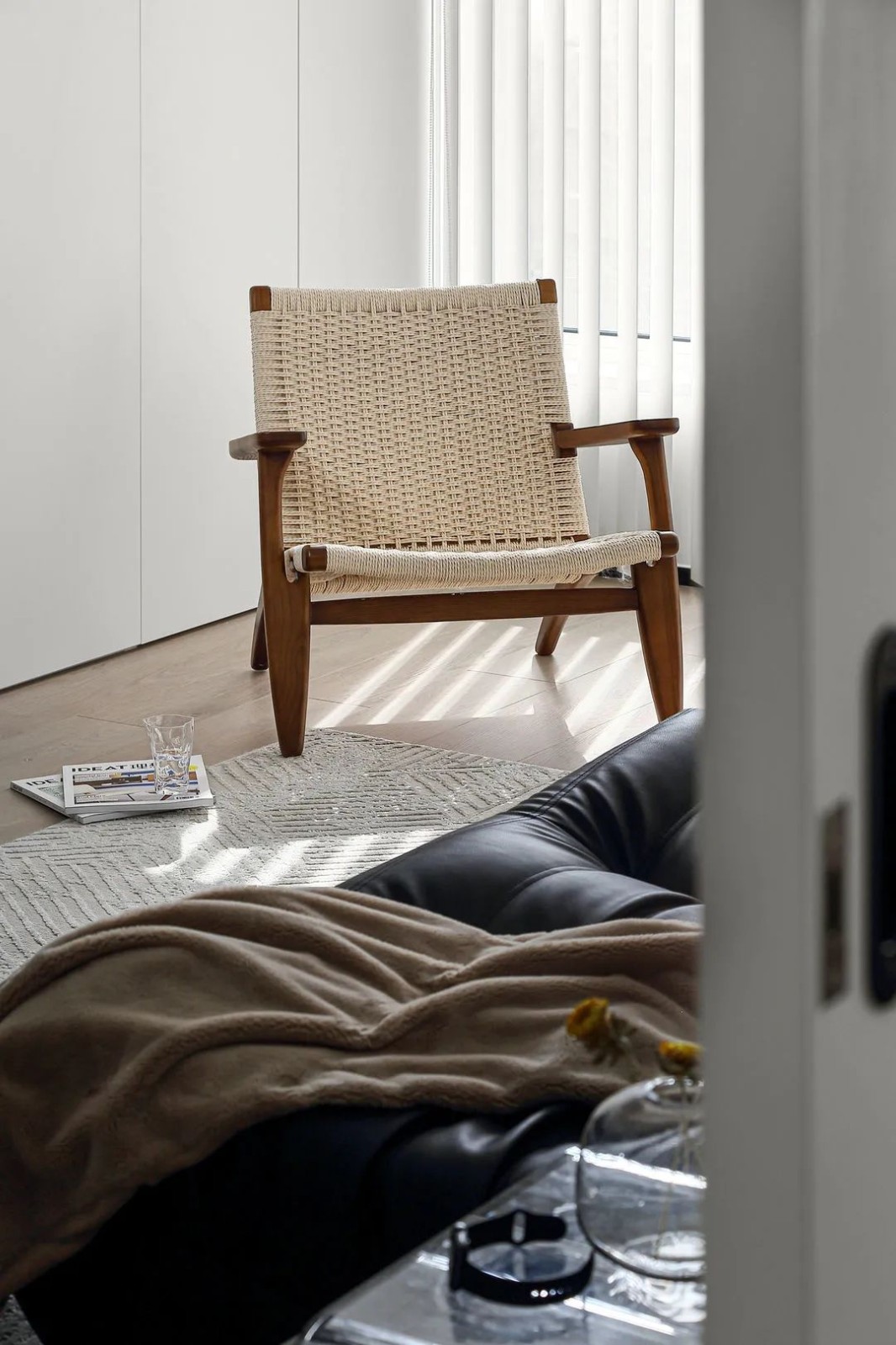 将阳台打通,包进了客厅空间,扩大了使用面积,同时大大改善了采光效果。摆放上一把休闲椅,手捧一本喜欢的书,享受光影交错的慢生活。