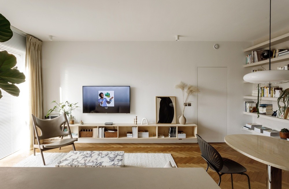 客厅墙面白色为主,为了明亮和干净