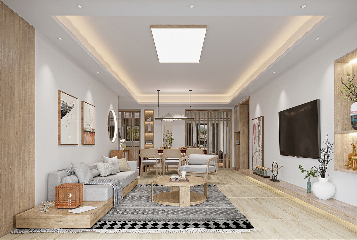 该方案保留了主卧,次卧,客厅,休闲阳台的原本格局,将原来的客房改造成了一间日式风浓郁的和屋。