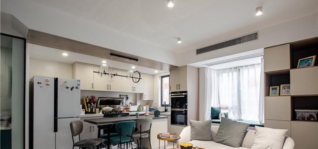 厨房原来是个封闭式空间,使用空间不够 。所以设计了餐厨一体开放式空间,让整个餐厅厨房客厅整体链接在一起,空间感更大一些。