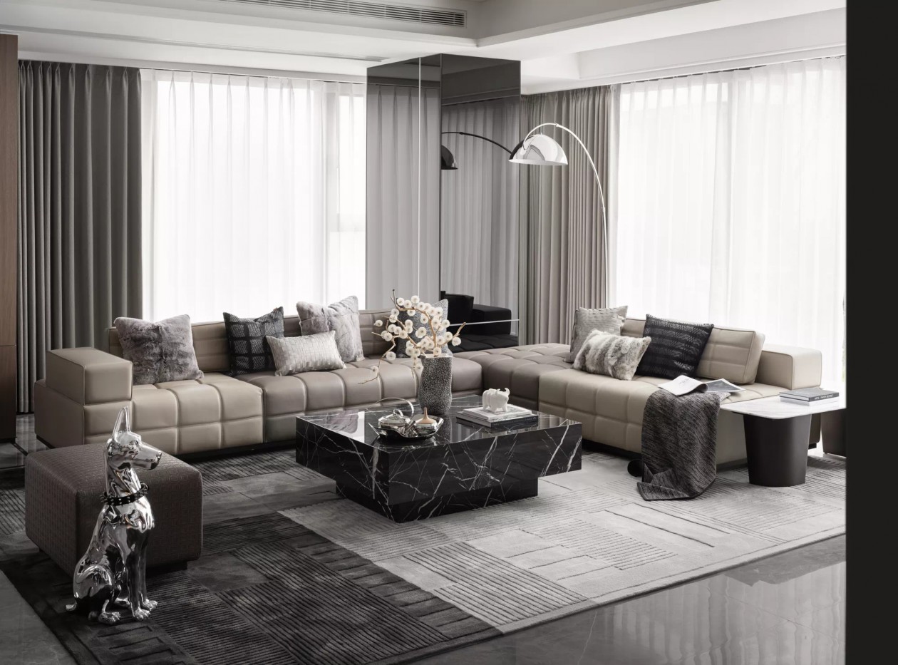 经典家具相辅相伴,金属与玻璃的质感,Minotti的色彩与质感,材质的碰撞带来细腻的尊贵感,