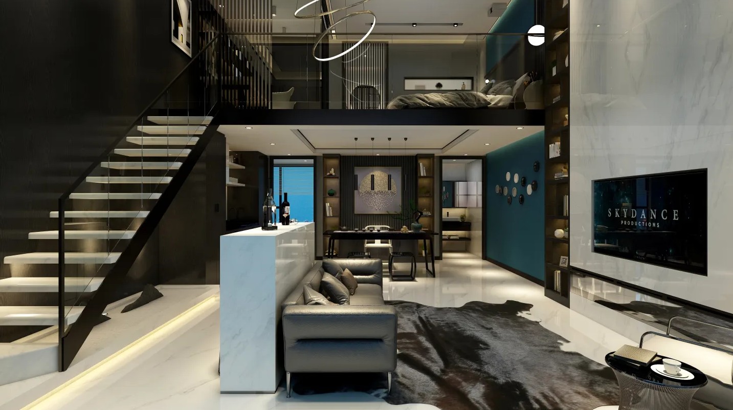 客厅主打***黑色,设计感满满,稳定不乱,主要颜色为黑白灰
