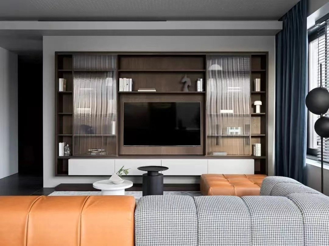 整个家的主色调采用灰白+木色的搭配,颜色不多且错落有致,雅致而***的灰色系让空间变得沉稳,跳跃的橙色沙发中和了灰色的肃穆感,让客厅变得更加时尚活泼