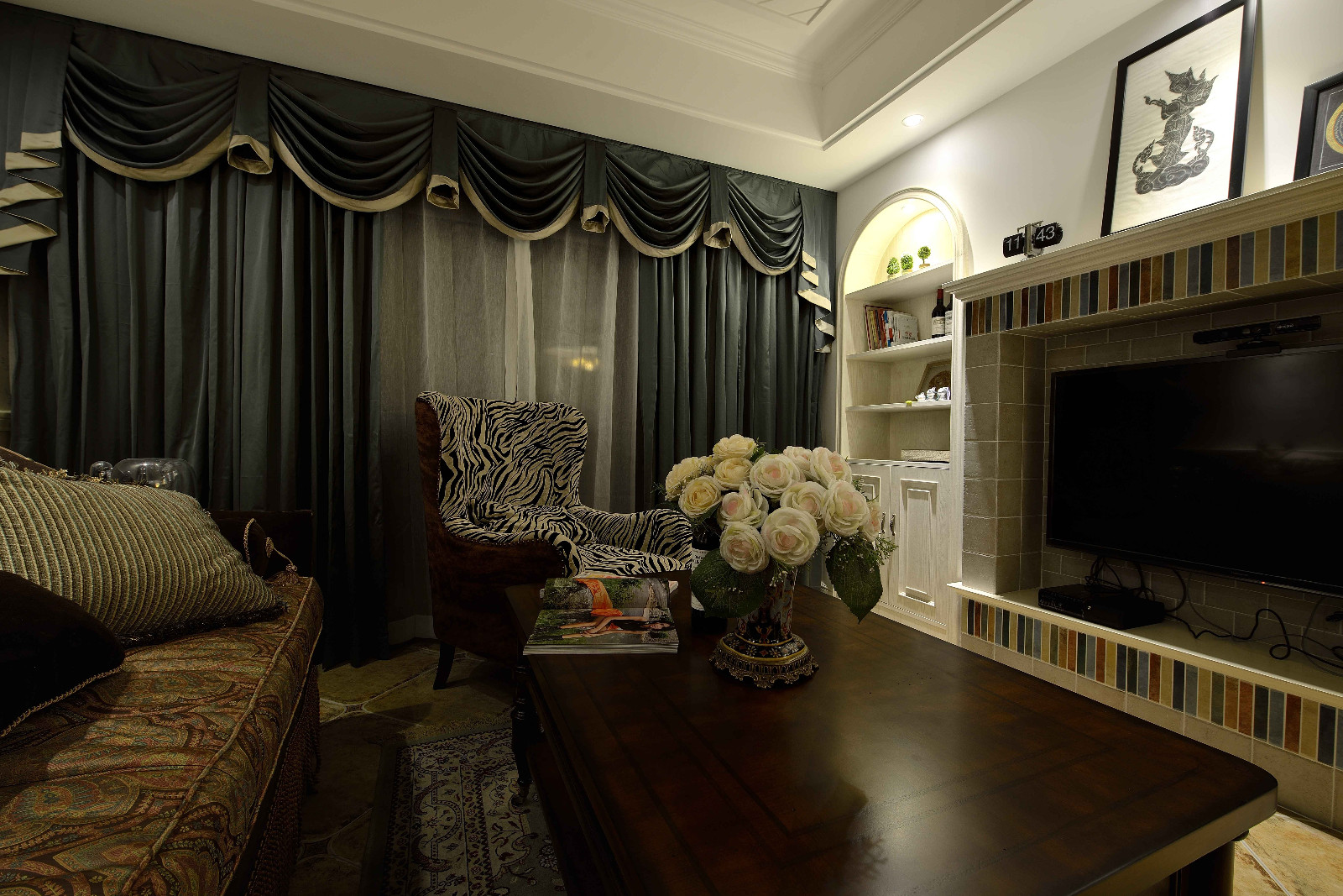 布置装饰上善于采用软装、色彩,及背景墙上的纹理等,来营造一个休闲、轻松、愉悦的生活氛围。