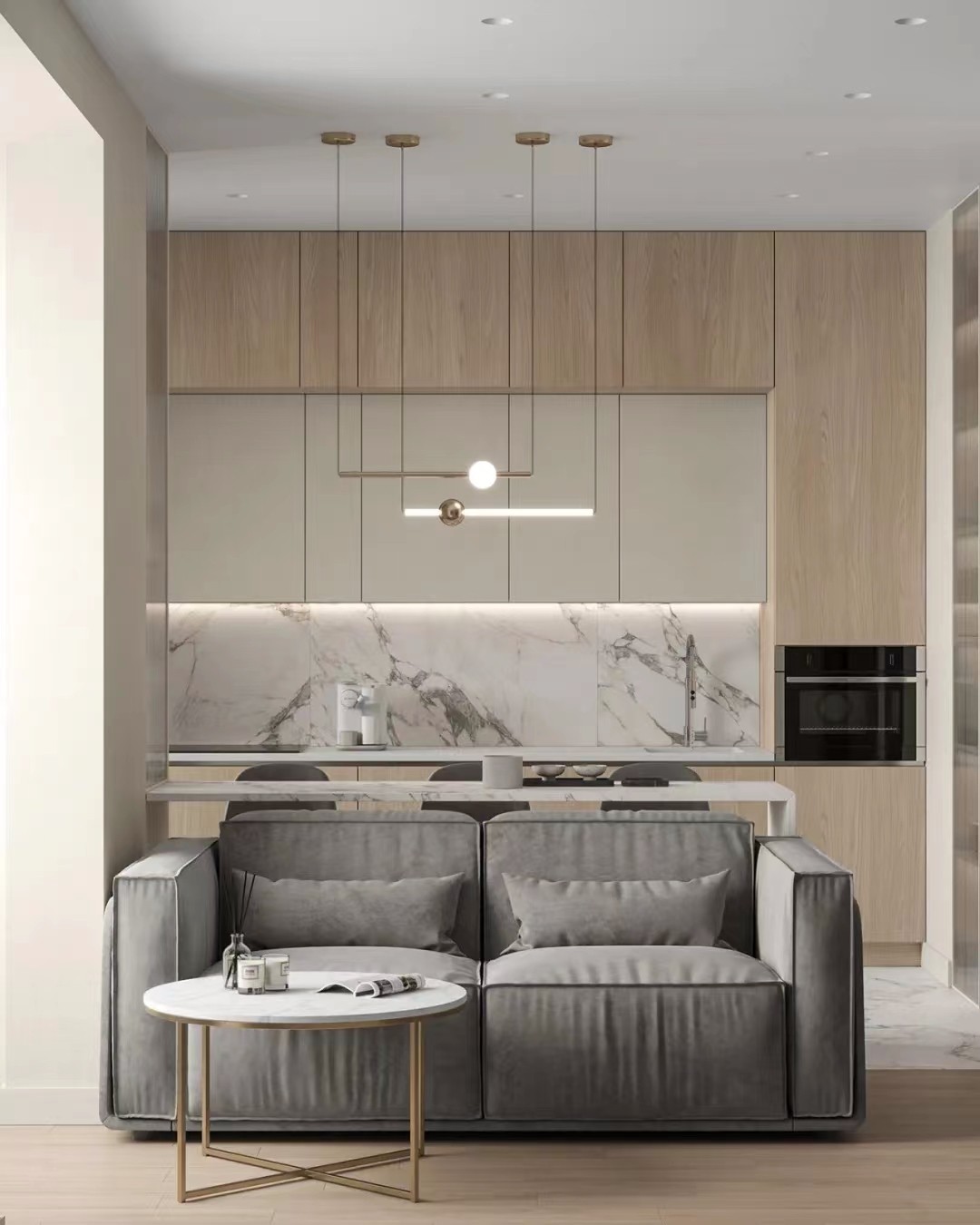 开放式厨房增加了与客厅的交流,互动性增大