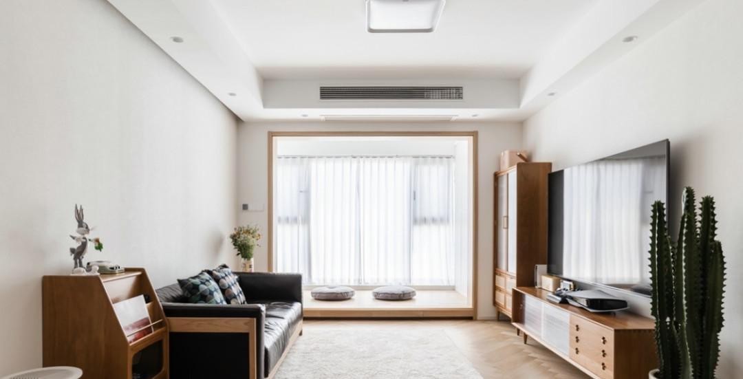 打通客厅阳台后,做了地台的设计,大大的落地窗,还有满满的收纳储物柜;地台下面加入了灯带,晚上的时候更温馨浪漫;木质的柜子上摆放一些喜欢的小物件,室内放置鲜花和绿植不仅提升房间的美感,让会整个空间充满美好生活的气息