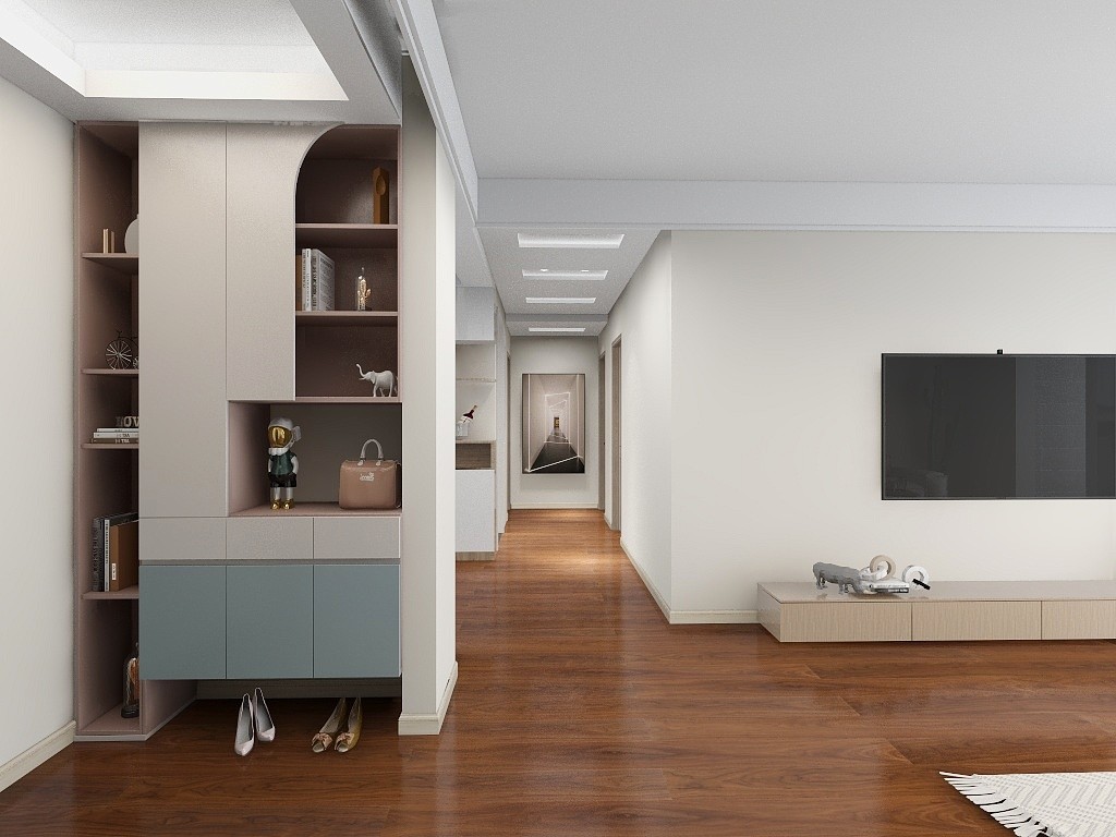 客厅简单设计 不要做太复杂的吊顶 色系使用了温馨治愈的奶油风 整体空间温馨整洁