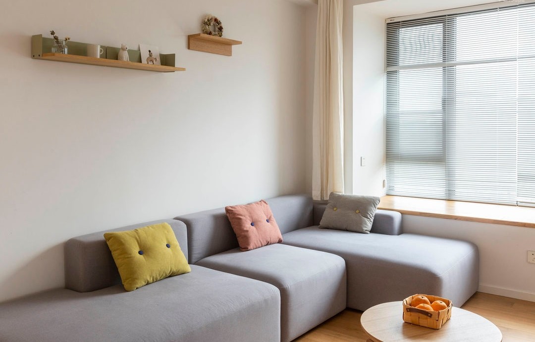 家里整体的颜色以干净的白色+原木色为主,点缀色是由***看好的餐桌灯的薄荷绿延展开,窗帘,墙上的装饰置物架都似乎是招手呼应。