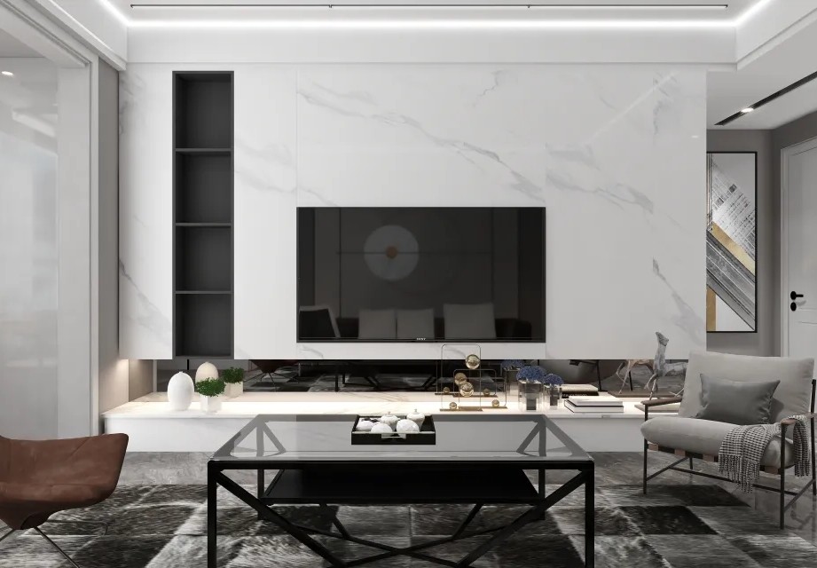 岩板电视背景墙,内嵌电视