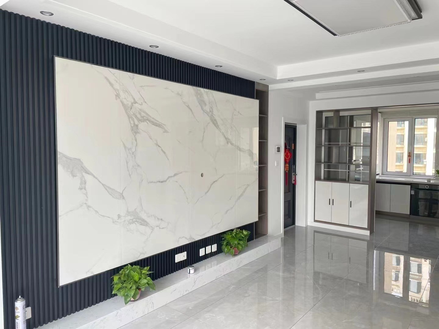 电视背景墙简约设计,白色岩板主流设计