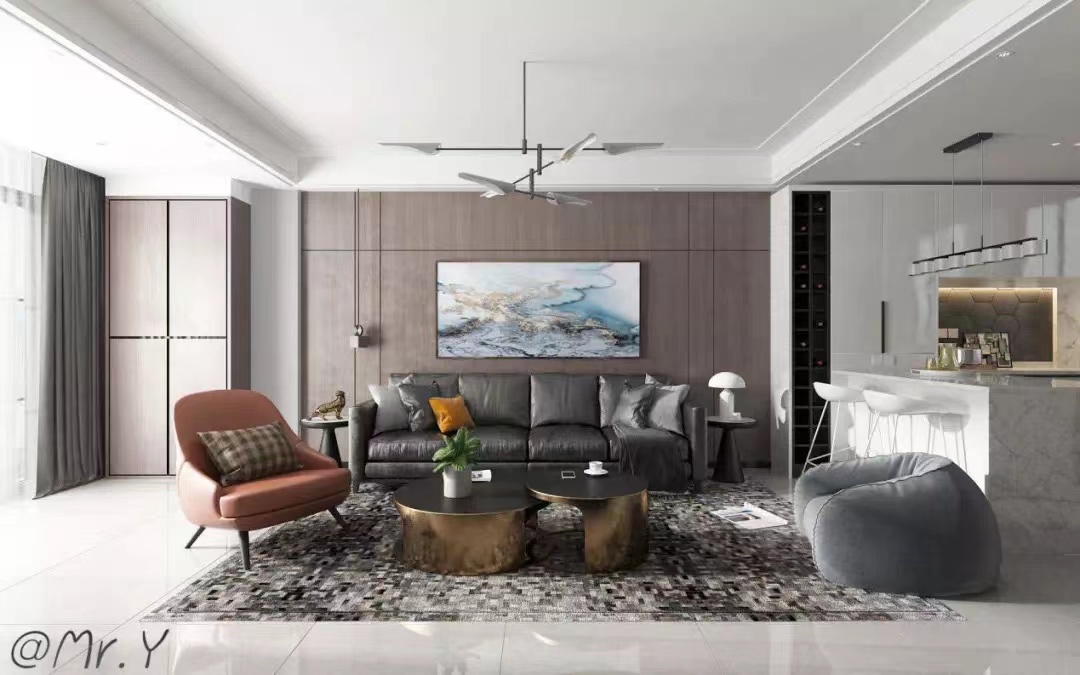 沙发一定要是靠墙的,做起来会比较舒服会有安全感。