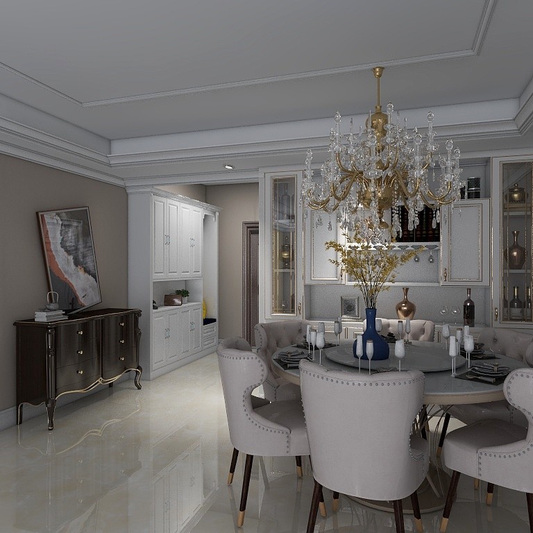 客厅采光比较暗,采用了辅助灯原作为整体调节。整体采用浅色调