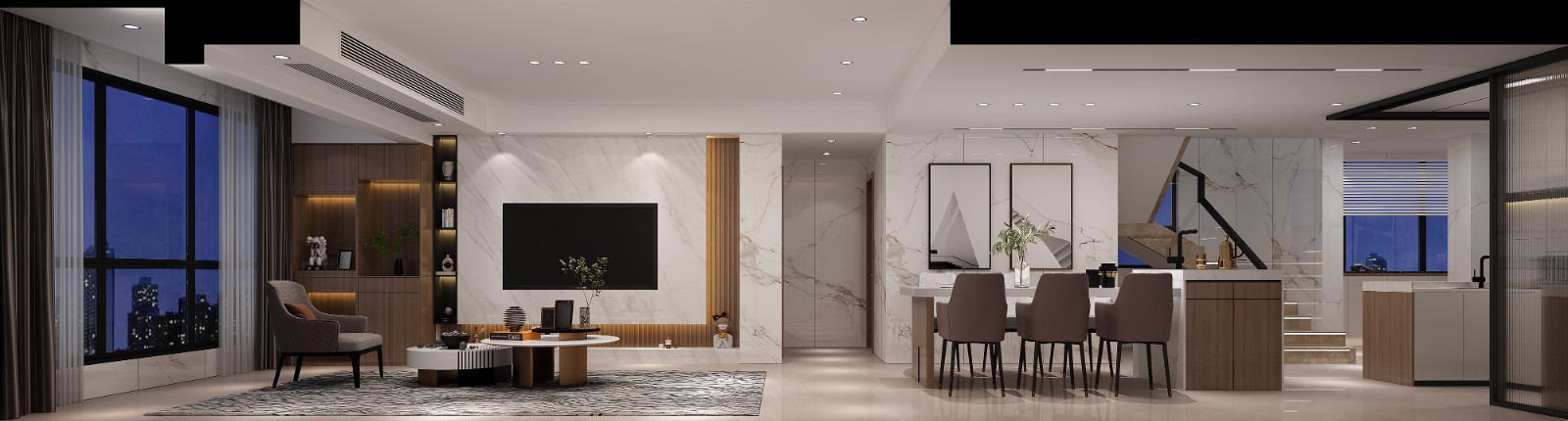 全屋漫反射光源处理,使光源更柔和自然,提供照明的同时营造更好的空间氛围