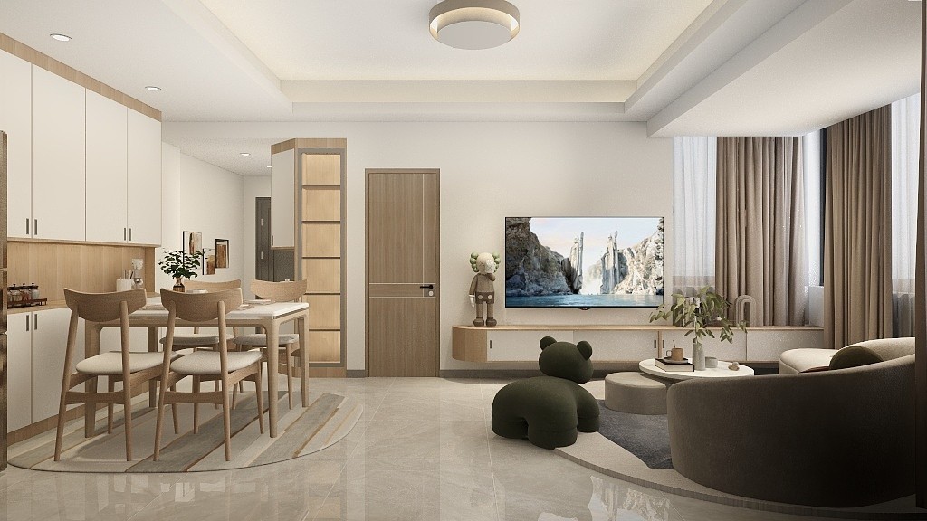 客厅不是特别大的, 所以要把客厅的干净整洁及合理性体现出来,适当的留白处理会让空间更加美观。