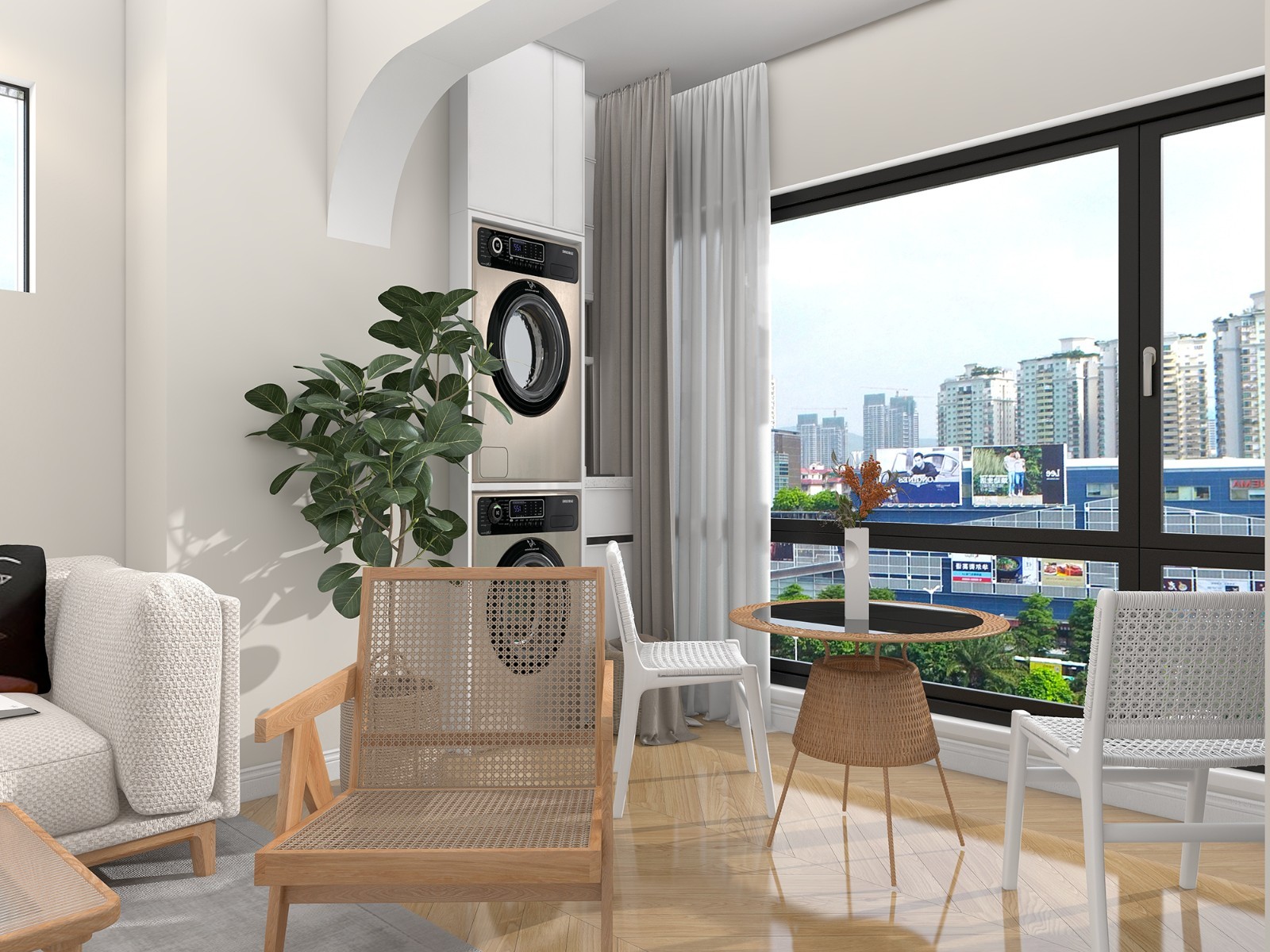 客厅采用落地窗设计。