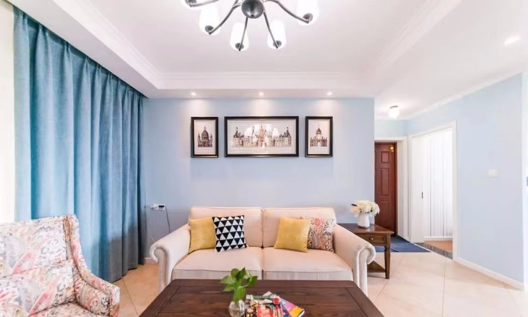 小夫妻两个都很喜欢电影和追剧,所以设计师在客厅保留了开阔明朗的格局,避免过多功能区带来的纷杂感。