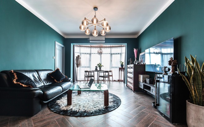 整个客餐厅略显前卫,但是搭配在一起却有独特的味道,地砖人字拼贴由此添上一丝岁月的气息,在风格上又带有一点时尚摩登的魅力,良好的搭配不但能轻松奠定基调,强烈的CP感还能升级为复古的表现力。