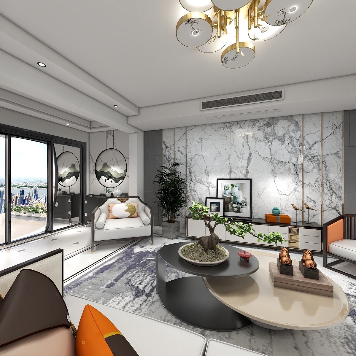 新中式风格,业主是个成功人事,喜欢稳重一点的色调